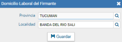- Domicilio laboral del firmante: consta de Provincia y Localidad y ambas deberán ser seleccionadas del combo correspondiente.