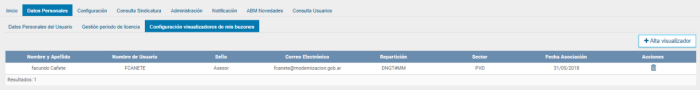 Se incorpora la funcionalidad de visualizar los Buzones de Tareas Pendientes de Otros Usuarios. Para configurar la lista de usuarios visualizadores de deberá presionar el botón + Alta visualizador.