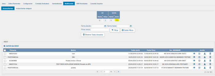 En esta solapa se podrán consultar notificaciones, avisos y alertas a partir de palabras claves o fechas.