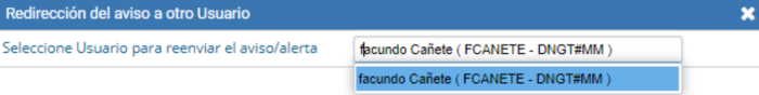 Además, se podrá redireccionar el aviso que creamos conveniente a otro usuario presionando el botón y luego seleccionando el usuario destinatario del aviso.