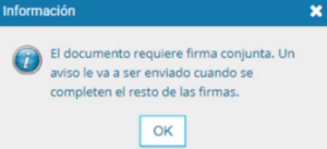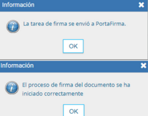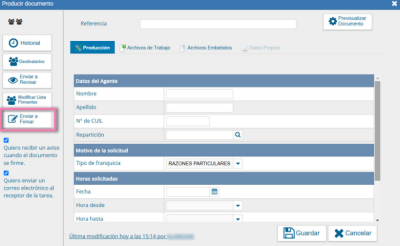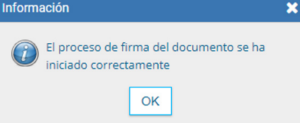 Una vez firmado por el agente, el sistema envía la solicitud al superior jerárquico definido en los firmantes. Se nos notificará cuando el circuito de firmas esté completo.