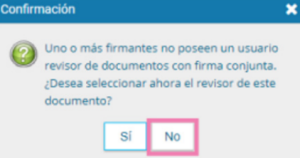 Nos pedirá que volvamos a confirmar si deseamos un revisor, marcamos “No”.