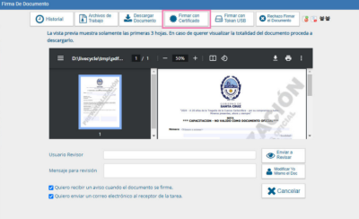 Para proceder a la firma seleccionamos Firmar con Certificado.